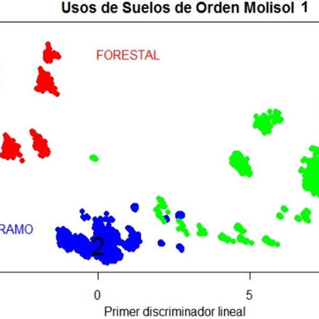 La función de regresión logística permitió predecir los valores en función del orden de suelo. La función discrimante lineal permitió tratar los datos a partir de una combinación lineal de las variables orden de suelo Andisol por uso de suelo (Arbustiva, Páramo, Pasto) y orden de suelo Mollisol por uso de suelo (Grupo1: Forestal, Páramo, Pastos. Grupo 2: Agricultura y Arbustiva).